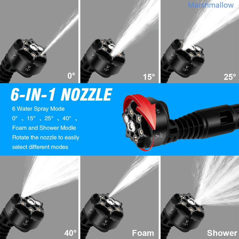✅ Monipuolinen puhdistus - Painepesurimme tarjoaa monipuoliset puhdistusominaisuudet jalkakäytävistä ajoneuvoihin, ja se soveltuu erinomaisesti erilaisiin ulkotilojen puhdistustehtäviin. Noin 10 metrin kantaman ja 5 metrin letkun pituuden ansiosta sillä pääsee helposti syrjäisille alueille.