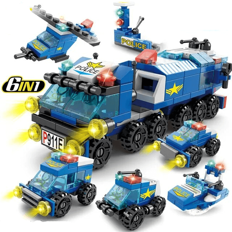 Älykkyyttä kehittävät 6-in-1-rakennuspalikat – paloauto, poliisiauto ja insinööriauto - Poliisiauto