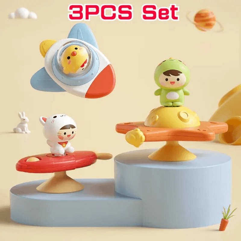 ✅ Vahva imuhauskuus - Varustettu vahvoilla imukupilla, nämä lelut kiinnittyvät turvallisesti mille tahansa tasaiselle pinnalle, tarjoten tunteja viihdettä, kun ne pyörivät iloisesti ja vangitsevat lapsesi huomion.