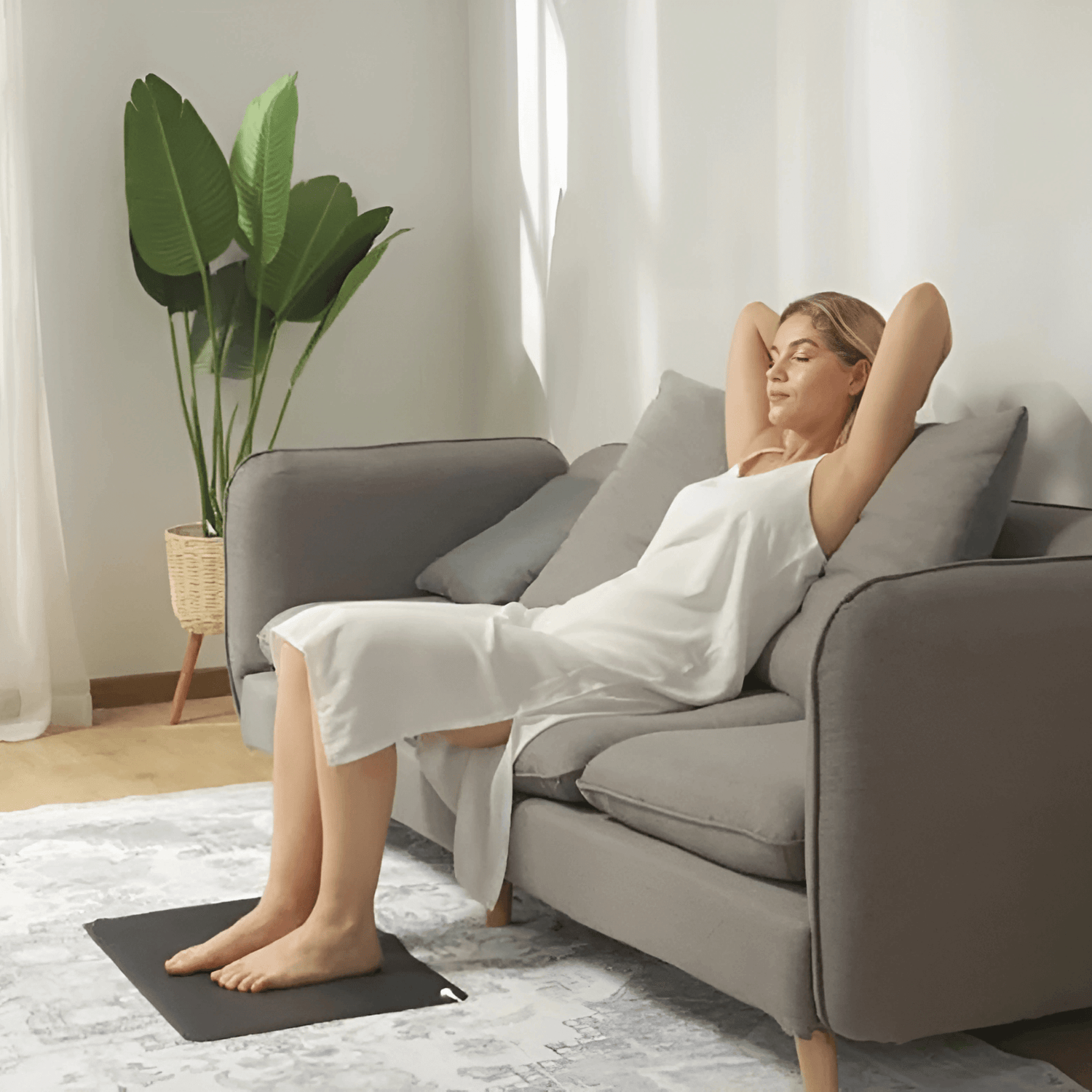 Anslut den medföljande kabeln till vägguttagets jordningskontakt och placera händer eller fötter på mattan. På bara några ögonblick kan du börja dra nytta av de möjligheter som jordning kan erbjuda.