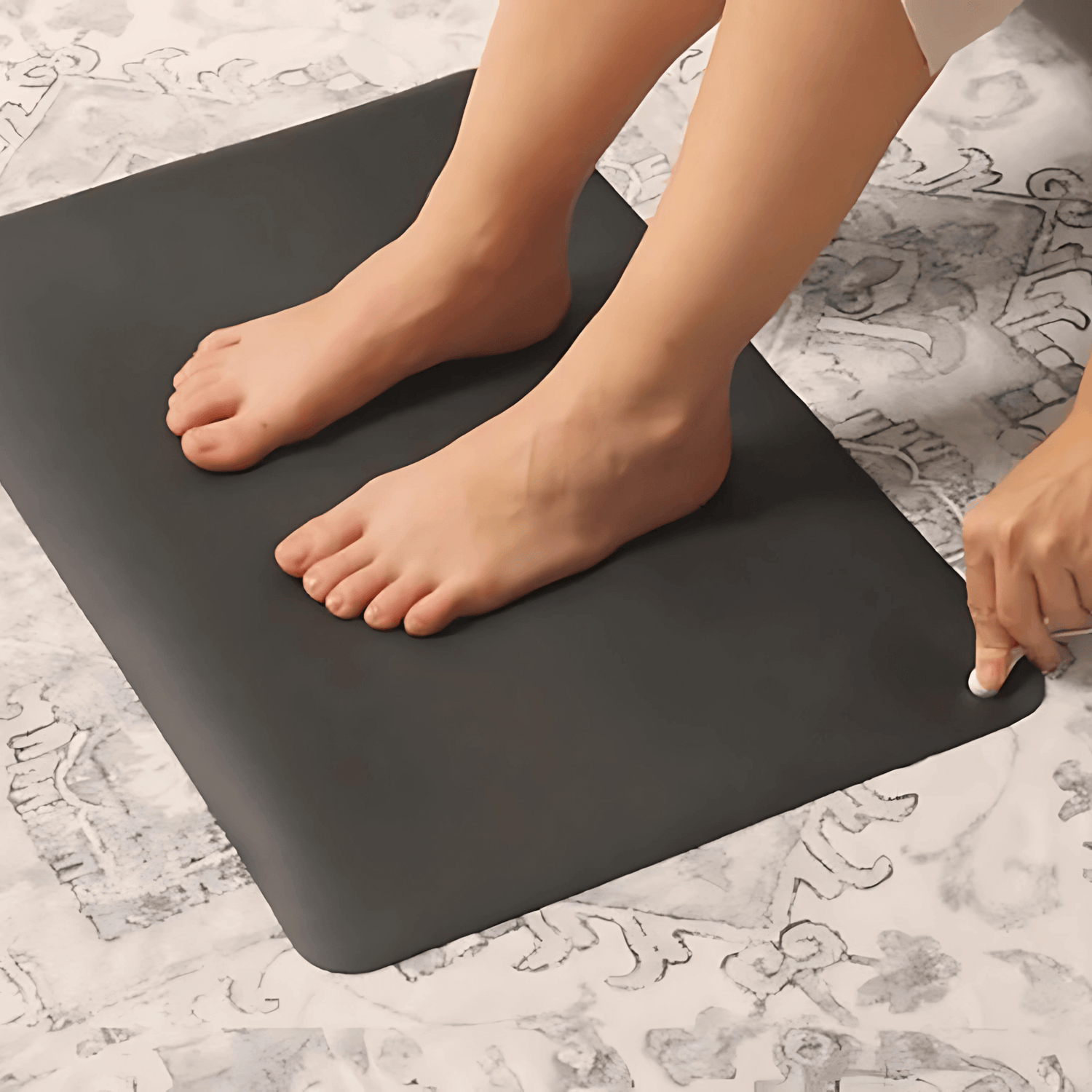 Den släta PU-ytan är behaglig mot huden och kan bidra till komfort även vid längre användning. Undersidans halkskydd hjälper till att hålla mattan stabil på olika underlag, vilket kan göra den praktisk både på skrivbord och golv.