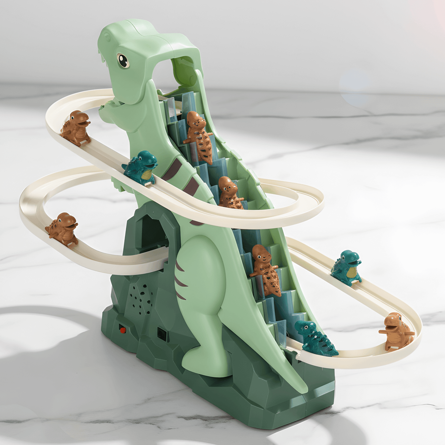 Dinosaurierna kan röra sig uppför trappan på ett jämnt och cykliskt sätt, vilket kan skapa en känsla av ständig aktivitet och rörelse. Den automatiska funktionen kan göra lekstunden mer dynamisk och ge barn möjlighet att följa små dinosaurier på spännande resor upp och ner.