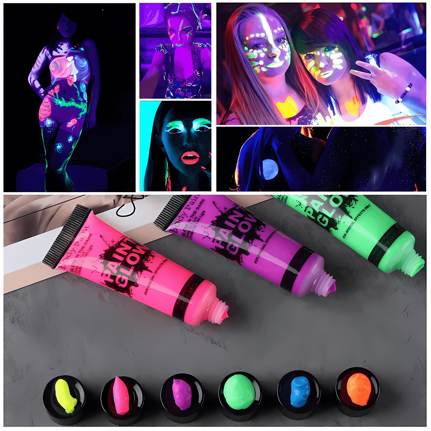 NeonAura – Halloween Neon Fluoresoiva UV-vartalomaalisetti kasvoille ja vartalolle, Glow in the Dark, juhla- ja festivaaliväri