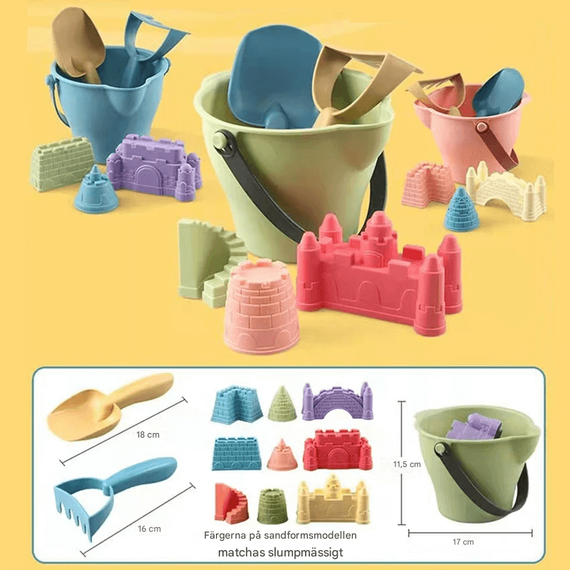 Interaktiiviset rantaleikkikalut lapsille – ämpäri viidellä lisävarusteella, kestävä ja opettavainen