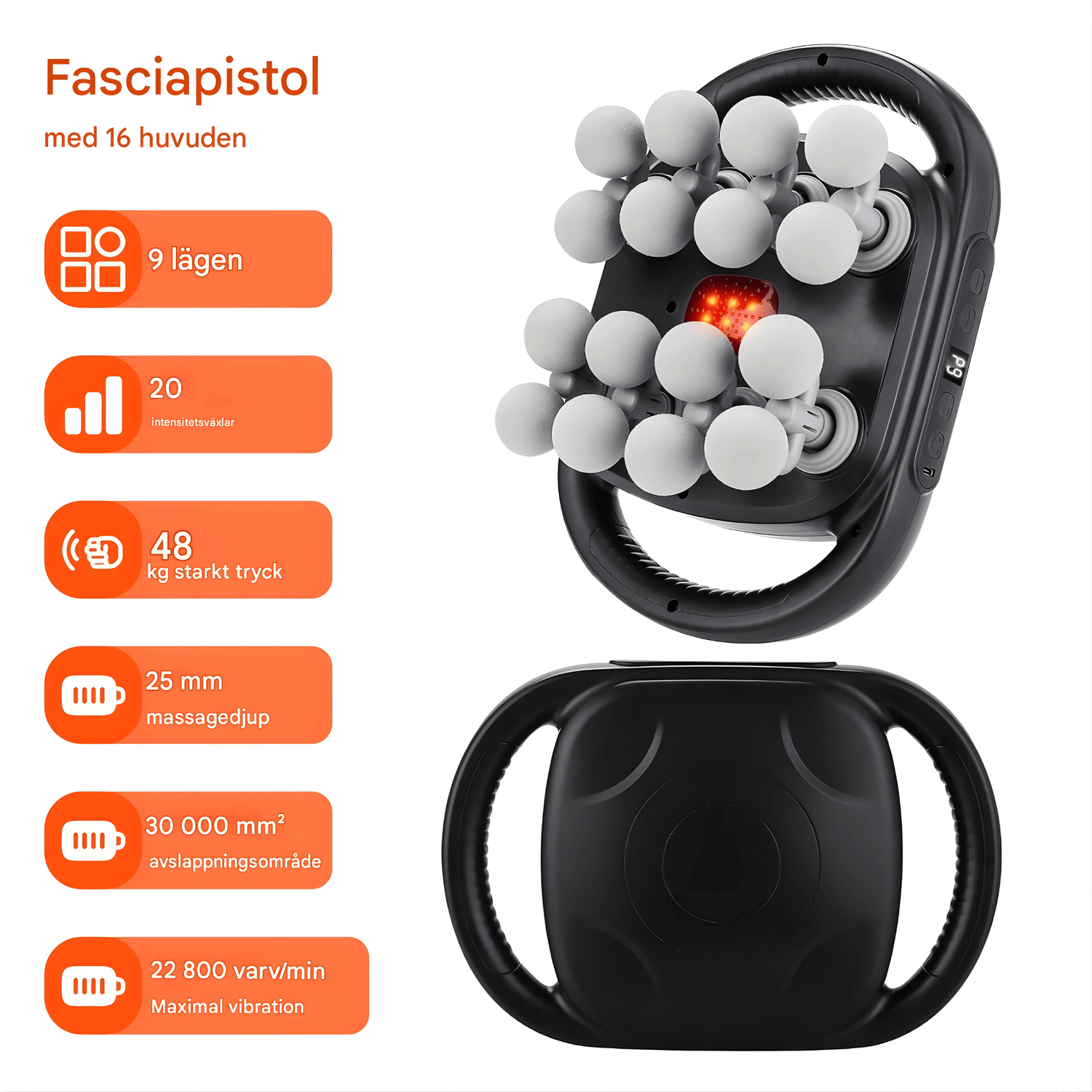 PulseRelief – 16-Huvuds Massagepistol med 9 Lägen & 20 Intensitetsnivåer för Hela Kroppen