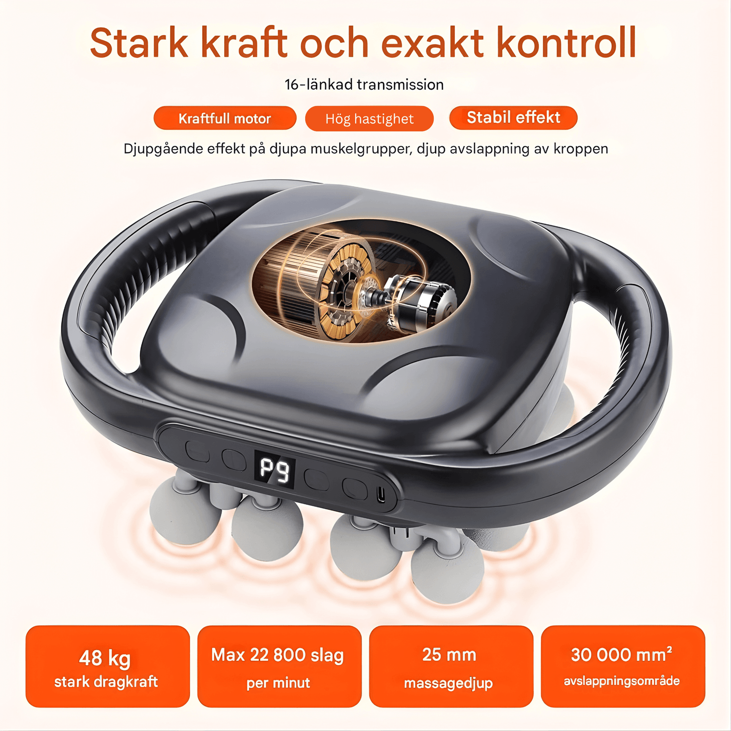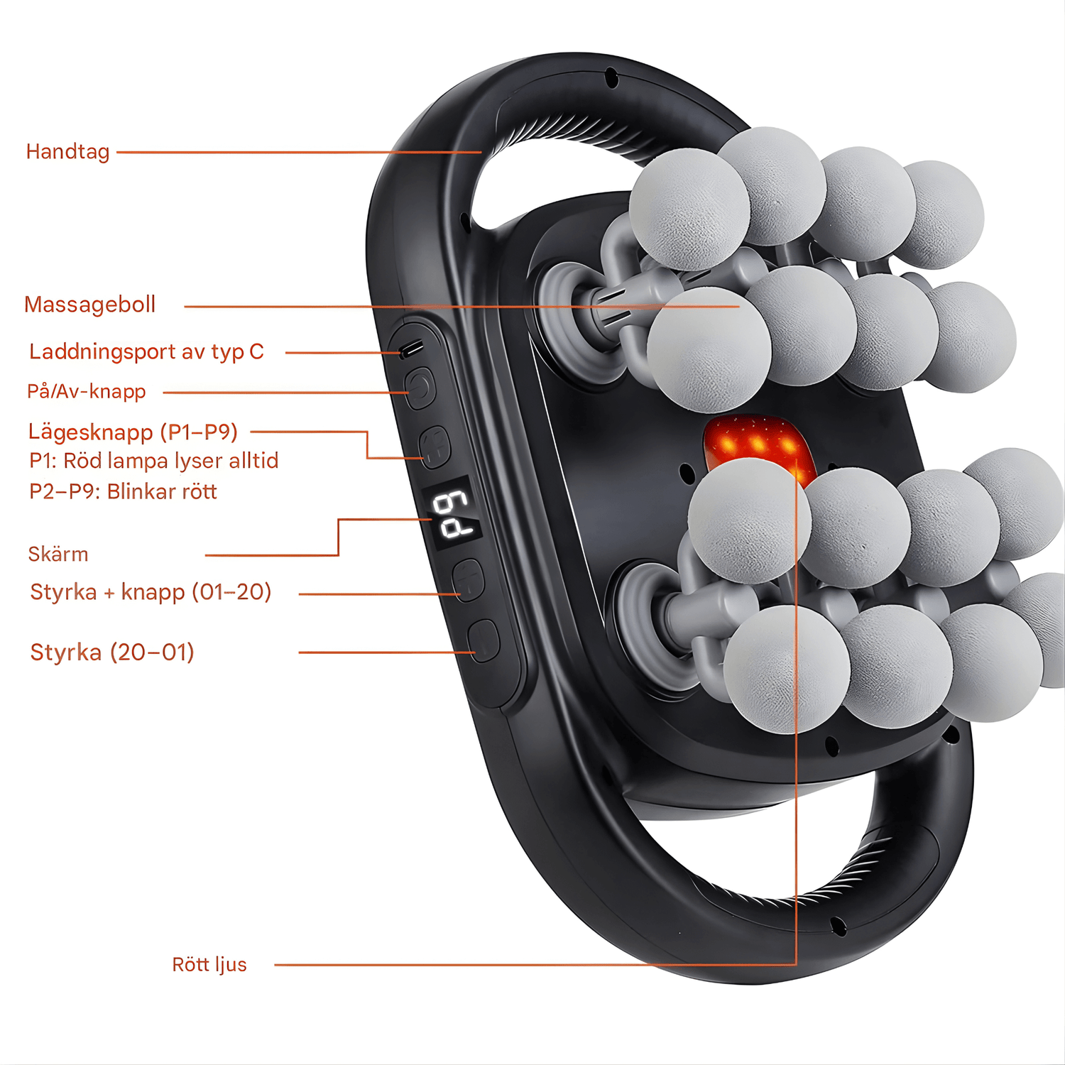 - 💆 16 utbytbara massagehuvuden – kan anpassas efter olika muskelgrupper