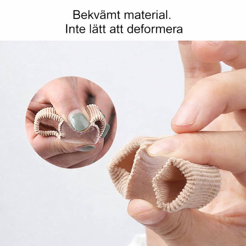 ToeAlign on valmistettu lääketieteellisestä geelipohjaisesta silikonista ja kankaasta, mikä voi tuntua pehmeältä, joustavalta ja mukavalta ihoa vasten myös pidemmässä käytössä.