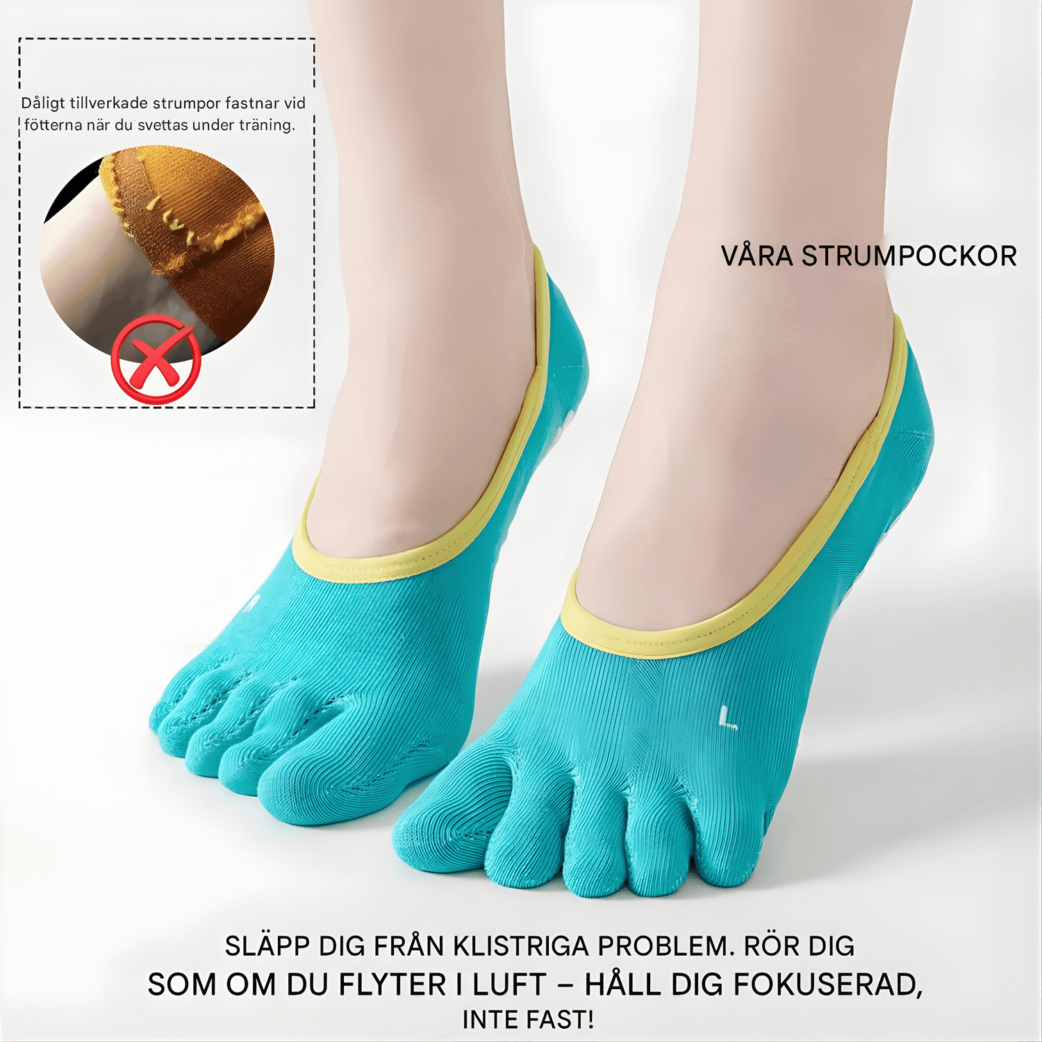 YogiGrip – Fem-Tå Yoga Strumpor med Halkskydd & Andningsbar Komfort för Kvinnor