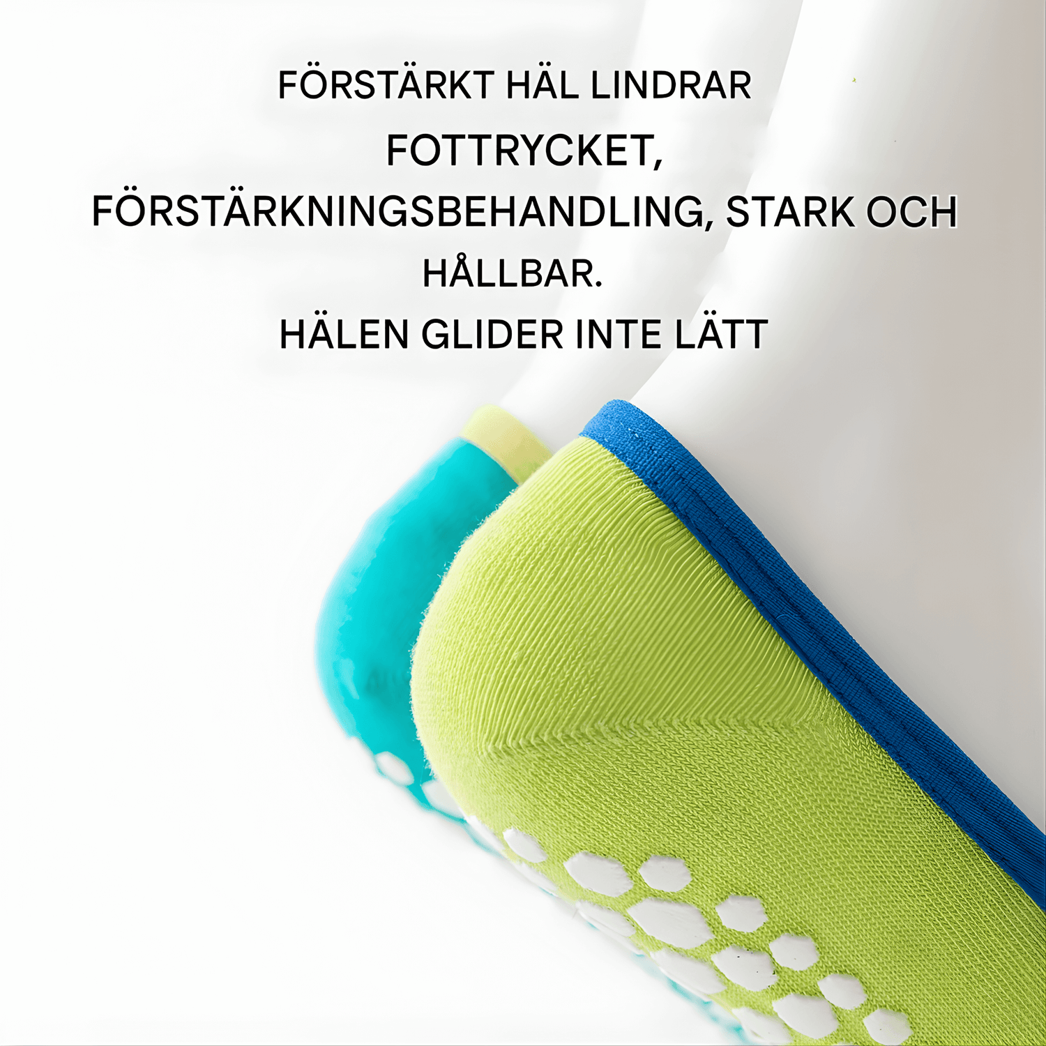 De små silikonprickarna på undersidan kan bidra till ett stabilt grepp på mattor och golv. Det kan göra skillnad under rörelser som kräver koncentration och balans, där ett säkrare fotfäste kan ge extra trygghet och fokus.